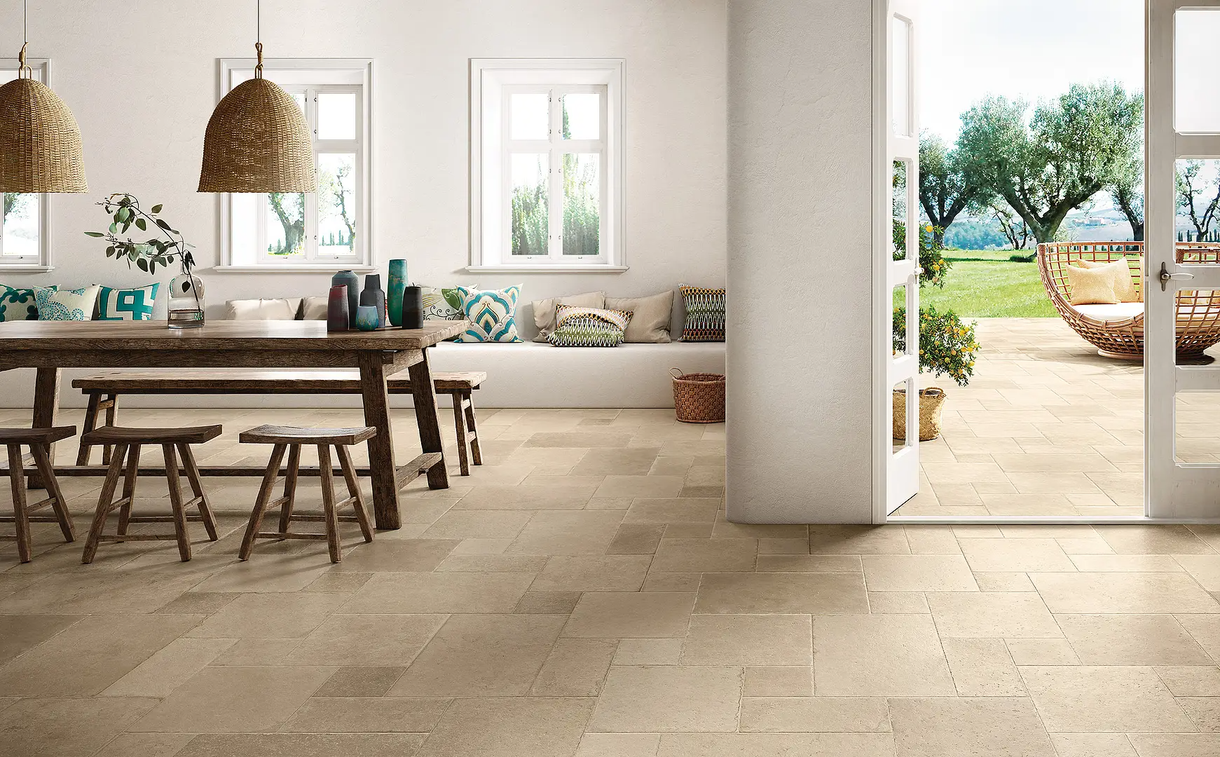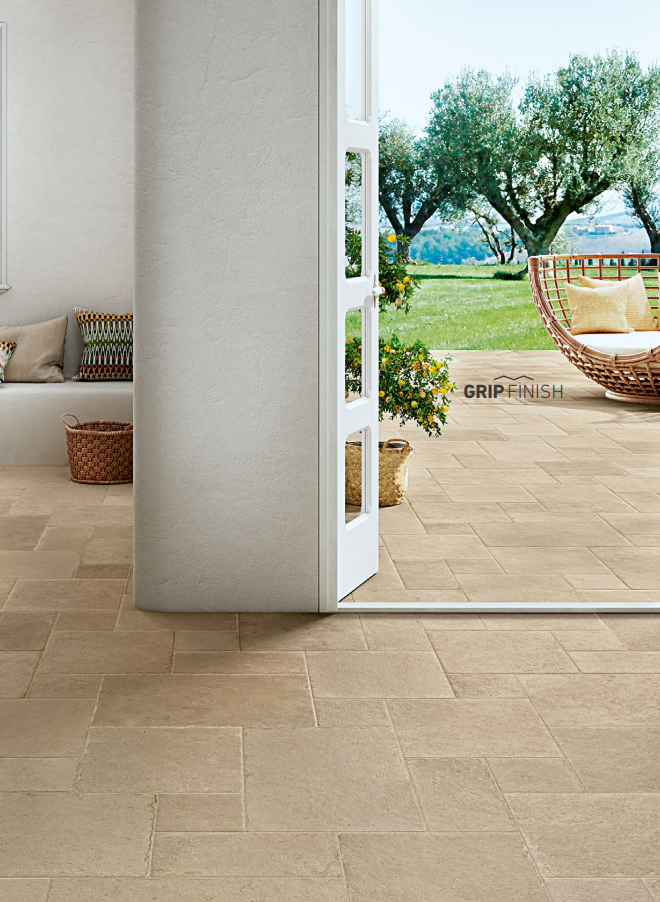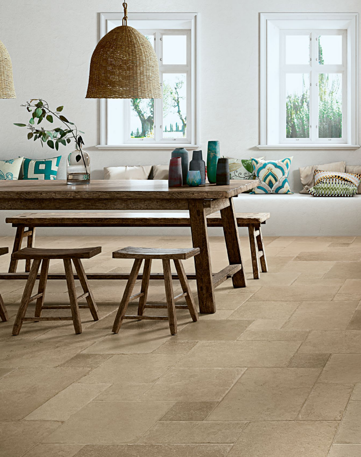 - Large format minimizes grout lines.