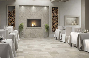 - Large format minimizes grout lines.