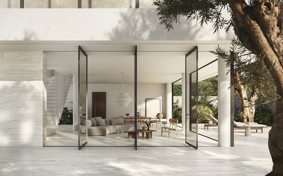 - Large format minimizes grout lines.