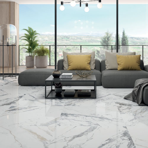 - Premium porcelain with a marble-inspired design.